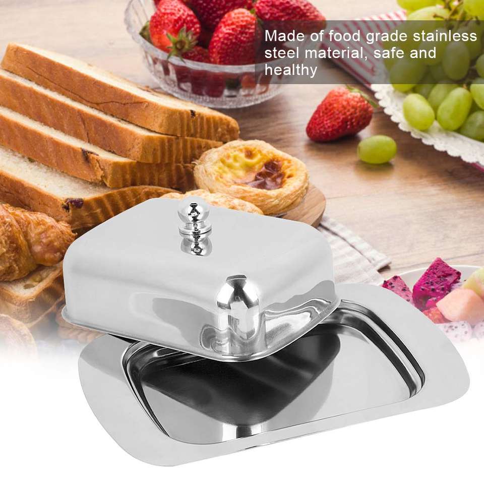ถาดสแตนเลสใส่เนยชีสเนยพร้อมฝาปิดจานโลหะอุปกรณ์เครื่องครัวจำนวนมาก