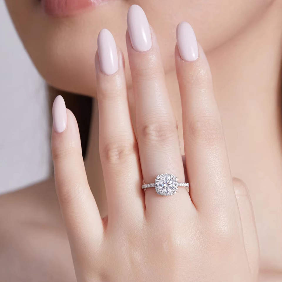 แหวนเพชรเลี้ยงในห้องปฏิบัติการสำหรับผู้หญิง เครื่องประดับชั้นดี เงินแท้ S925 ชุบโรเดียม แหวนแต่งงานเพชรโมอิสซาไนต์สำหรับผู้หญิง