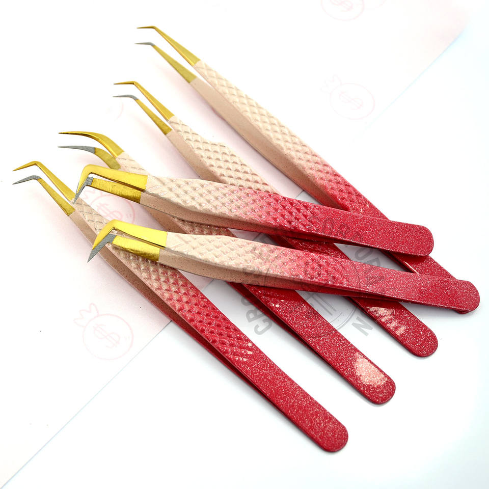 ชุดแหนบต่อขนตาแบบหนาพิเศษ แหนบต่อขนตาแบบยาวสำหรับแยกขนตาและแบบโค้ง แหนบแบบคลาสสิก ชุดแหนบด้ามจับเพชร