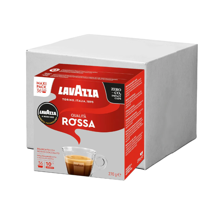แคปซูลกาแฟ Lavazza A Modo Mio Rossa แบบแพ็คใหญ่ 16 ชิ้น สำหรับซูเปอร์มาร์เก็ตและร้านค้าเครื่องใช้ไฟฟ้า