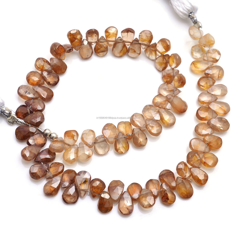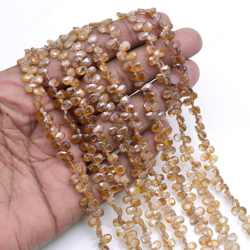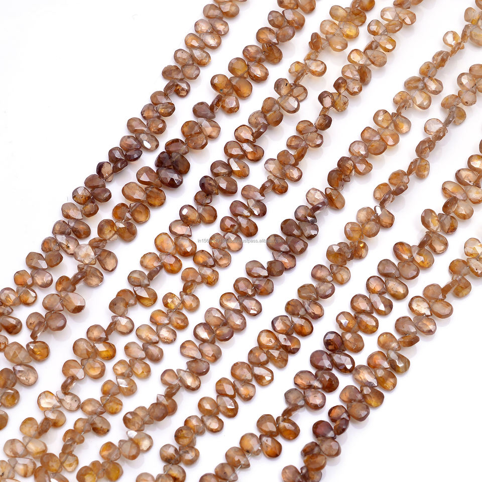 ลูกปัดพลอยเพทายสีน้ำตาลธรรมชาติคุณภาพพรีเมียมรูปทรงลูกแพร์เจียระไนแบบแฮนด์เมด รับรองโดยบุคคลที่สาม สำหรับทำสร้อยข้อมือ