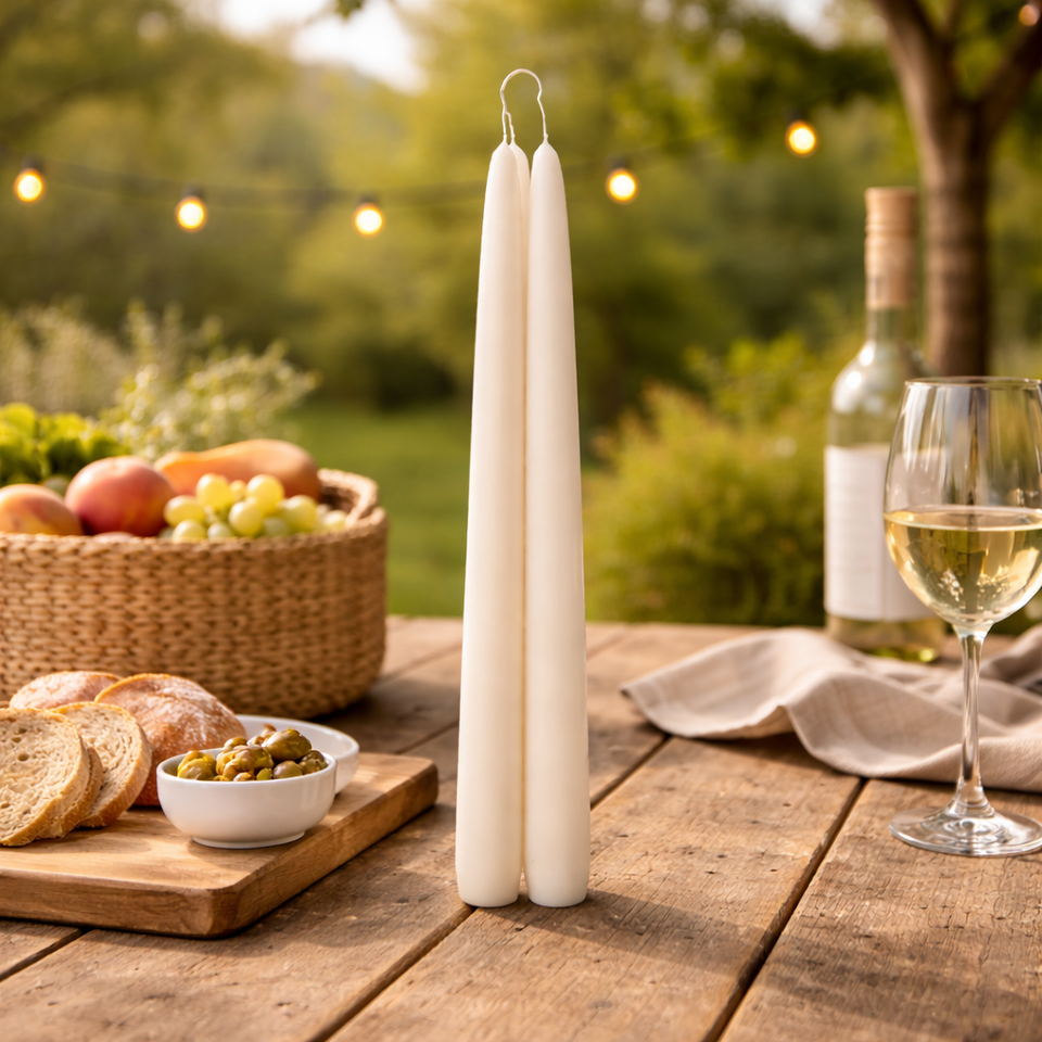 เทียนแท่งมินิมอลสีงาช้างแบบเป็นชุด 2 แท่ง ทำจากพาราฟินและไขถั่วเหลือง ไร้ควัน ไร้เปลวไฟ ไม่มีกลิ่นหอม ทำด้วยมือ-สำหรับงานแต่งงาน ตกแต่งคริสต์มาส
