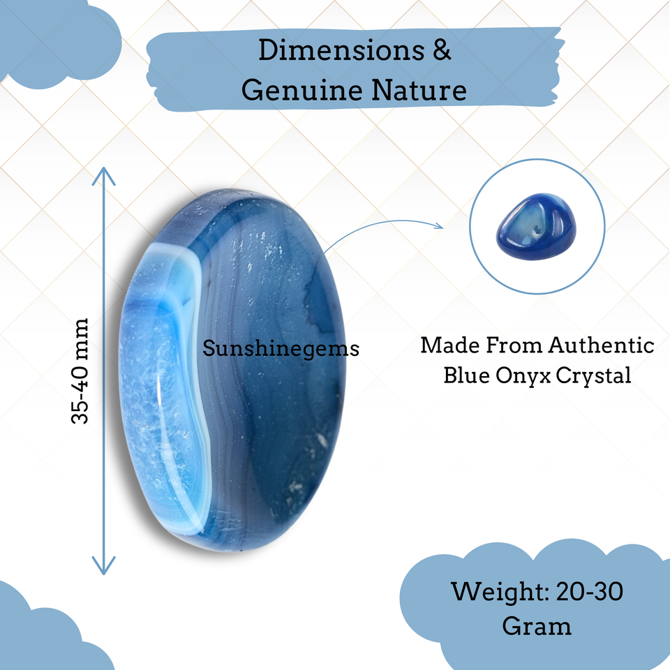 พลอยอัญมณีบำบัดบำบัดจากคริสตัลโอนิกซ์สีน้ำเงินธรรมชาติใช้นวดผ่อนคลายรูปไข่รูปหัวแม่มือ