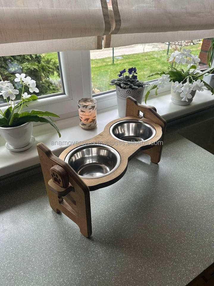 สั่งซื้อจำนวนมาก ถาดอาหารไม้ขัดเงาแบบกำหนดเอง เป็นมิตรกับสิ่งแวดล้อม สำหรับสุนัขและแมวขนาดเล็กถึงกลาง