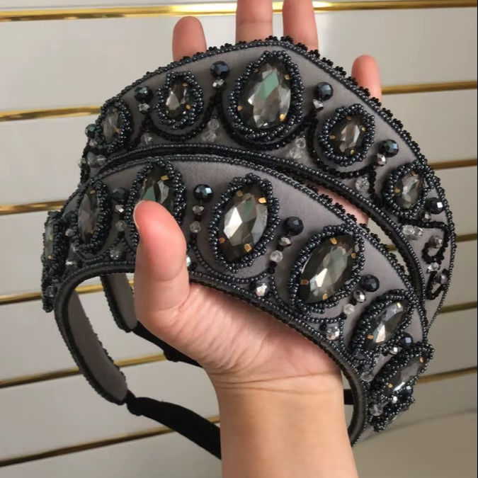 สั่งซื้อจำนวนมากลูกปัดคริสตัลกำมะหยี่สีเทาปักที่คาดผมเบาะรองศีรษะสำหรับงานแต่งงานของผู้หญิงเครื่องประดับผมทำด้วยมือชี้