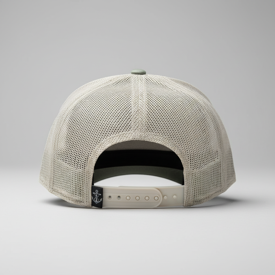 หมวกคนขับรถบรรทุกธีมทางทะเลสั่งซื้อจำนวนมากหมวก Snapback ตาข่ายสีเขียวปราชญ์โลโก้สมอเรือ2024