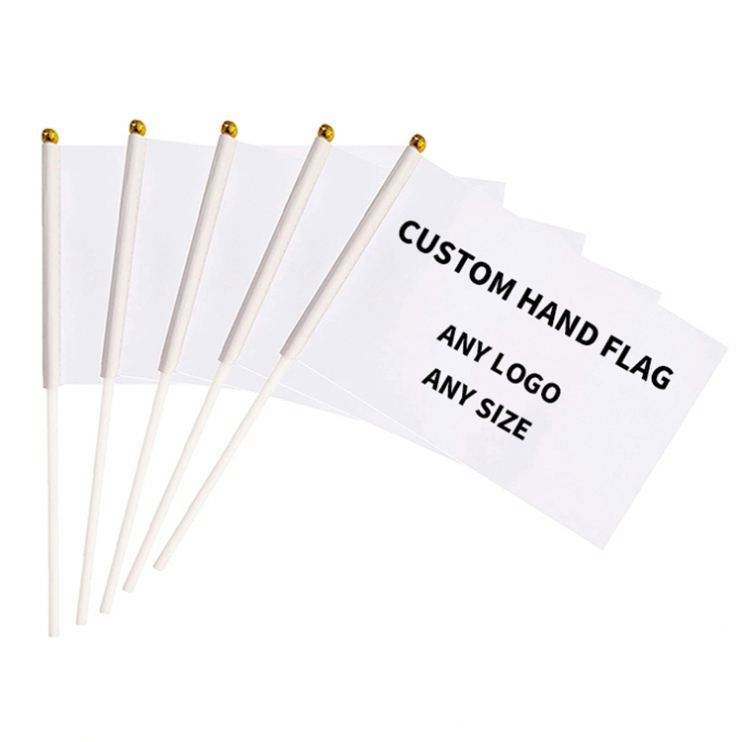 สั่งซื้อจำนวนมาก ขายส่ง ธงมือสีขาวล้วน พิมพ์ลายเองได้ 100% โพลีเอสเตอร์ พร้อมด้ามพลาสติก