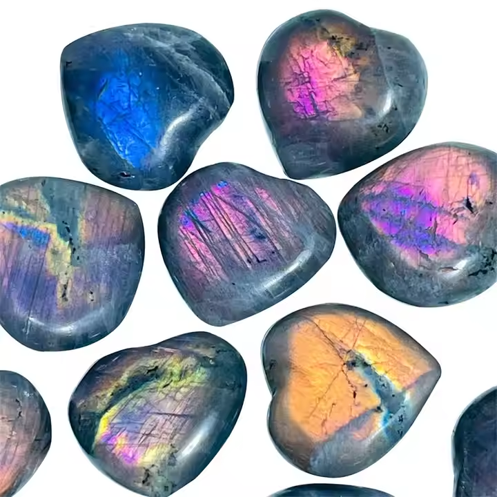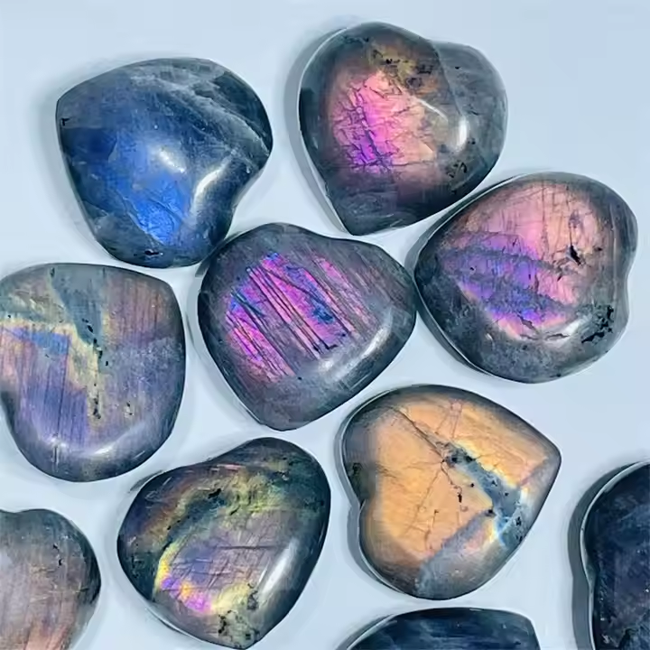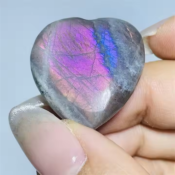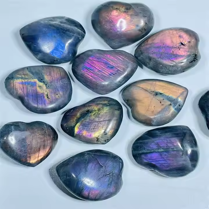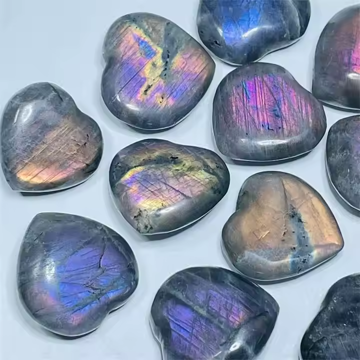 คริสตัลรูปหัวใจลาบราดอไรต์สีม่วงประกายแสงธรรมชาติสำหรับตกแต่งบ้านและงานแต่งงาน