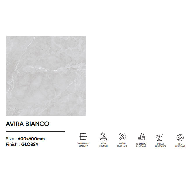 Avariyo Bianco กระเบื้องปูพื้นพอร์ซเลนขัดเงาขนาด60x60ซม. เคลือบดิจิตอลแบบทันสมัยทนไฟได้ในเชิงมิติ