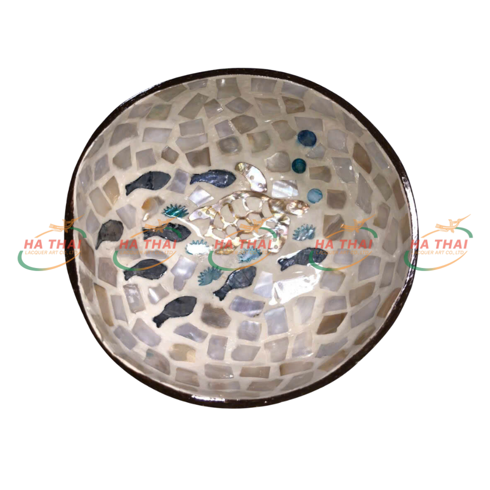 ชามเปลือกมะพร้าวธรรมชาติแบบขายส่ง เป็นมิตรกับสิ่งแวดล้อม ปลอดสารพิษ ดีไซน์เรียบง่าย ตกแต่งสวยงาม คุณภาพสูง งานฝีมือฝังลาย สำหรับส่งออก