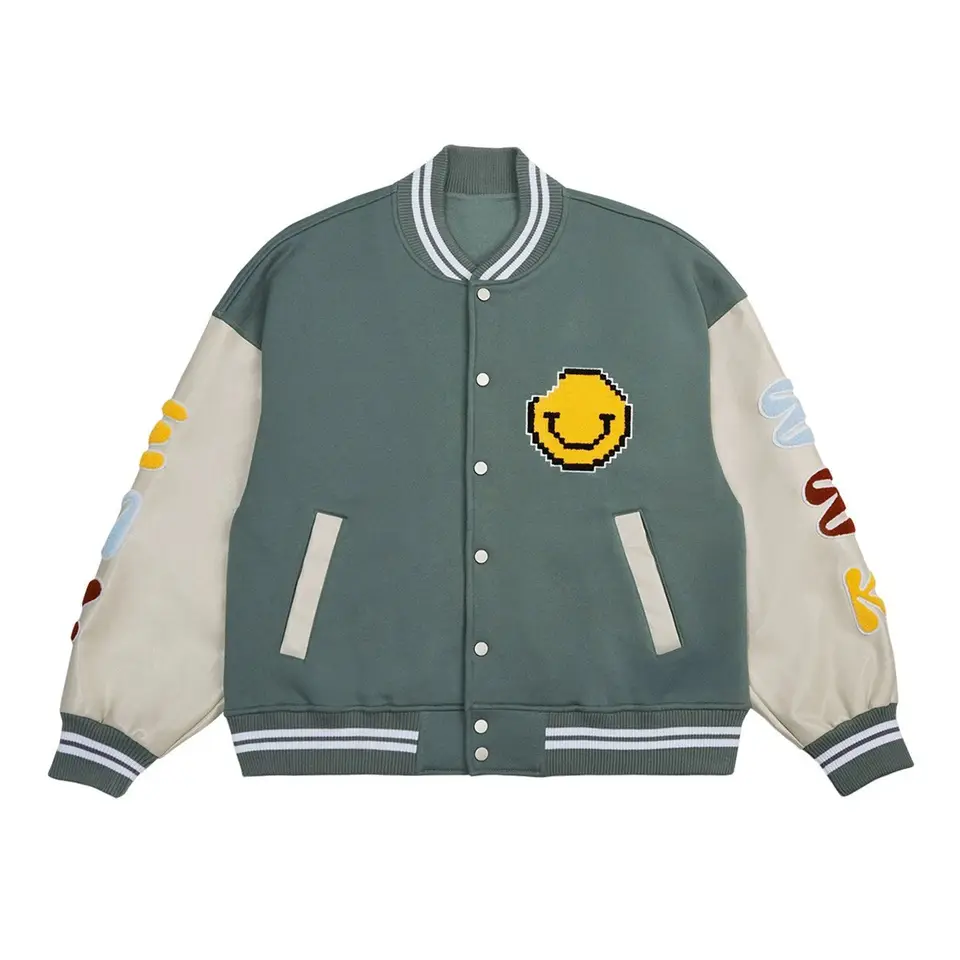 แจ็คเก็ตวาร์ซิตี้แบบเย็บคุณภาพพรีเมียม ขายดี จำนวนมาก ดีไซน์ใหม่ 2024 แบบ Letterman คอตั้ง กันน้ำ ใส่ได้ทั้งชายและหญิง