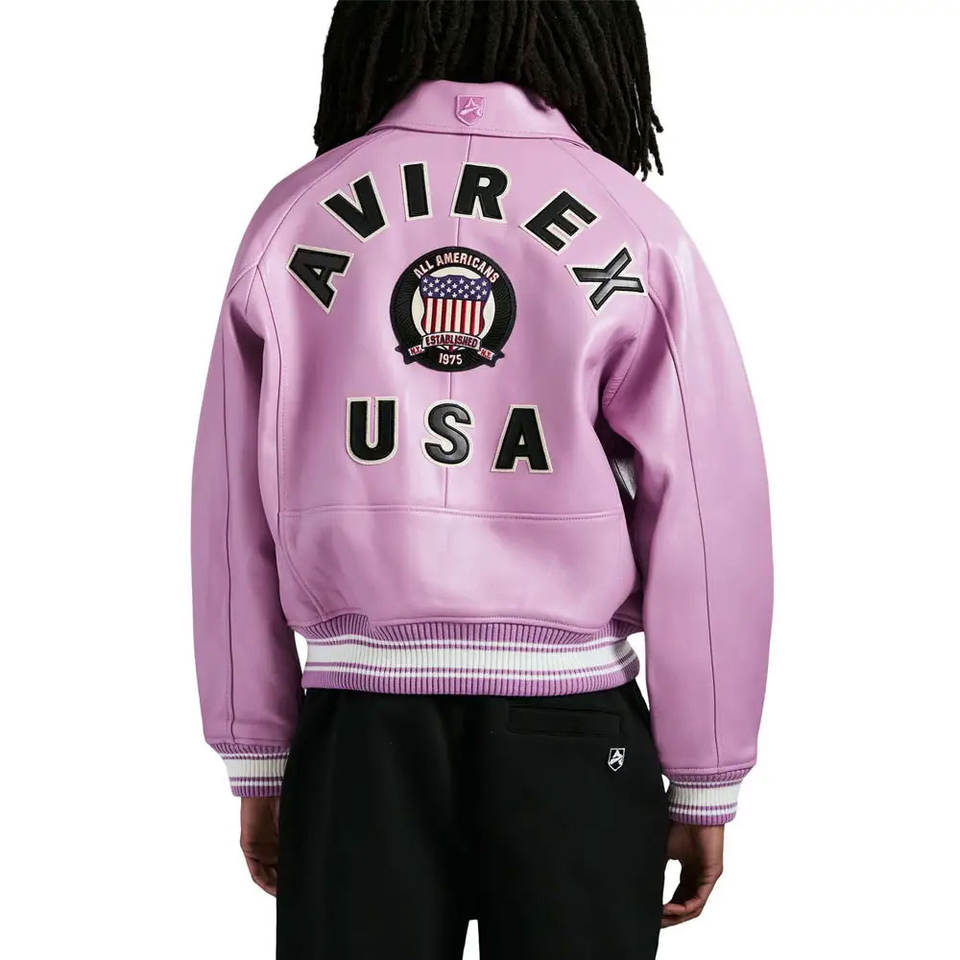 แจ็คเก็ตหนัง Avirex ลำลองสำหรับผู้หญิงเสื้อแจ็คเก็ตหนังสไตล์อินเทรนด์