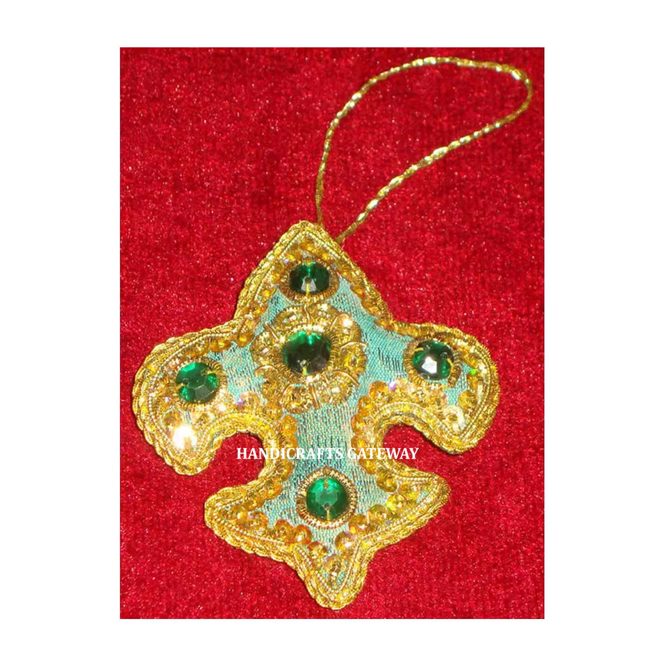 งานปักสีทองผ้าสีเขียวประดับลูกปัดและงานปักประดับต้นคริสต์มาสเครื่องประดับแขวน