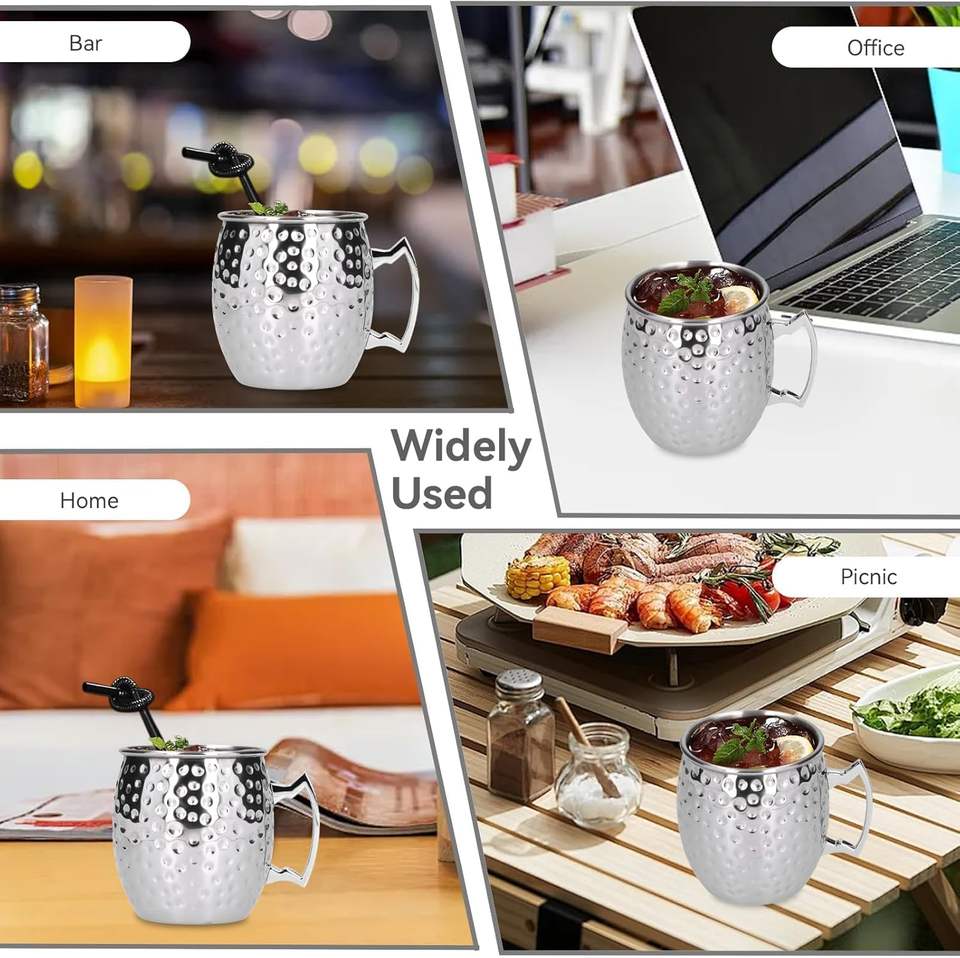 แก้วค็อกเทลสแตนเลสขนาด18ออนซ์พร้อมหูจับถ้วยโลหะมอสโกมิวล์ขนาด450มล. แก้วเบียร์ค็อกเทลลายจุดพร้อมโลโก้