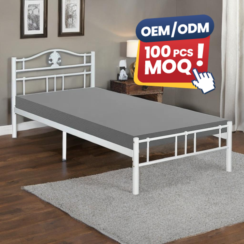 เตียงเหล็กโครงเตียงเหล็กเดี่ยวสีขาวเตียงเหล็กทนทานสำหรับห้องนอนที่ทันสมัยสำหรับหอพัก