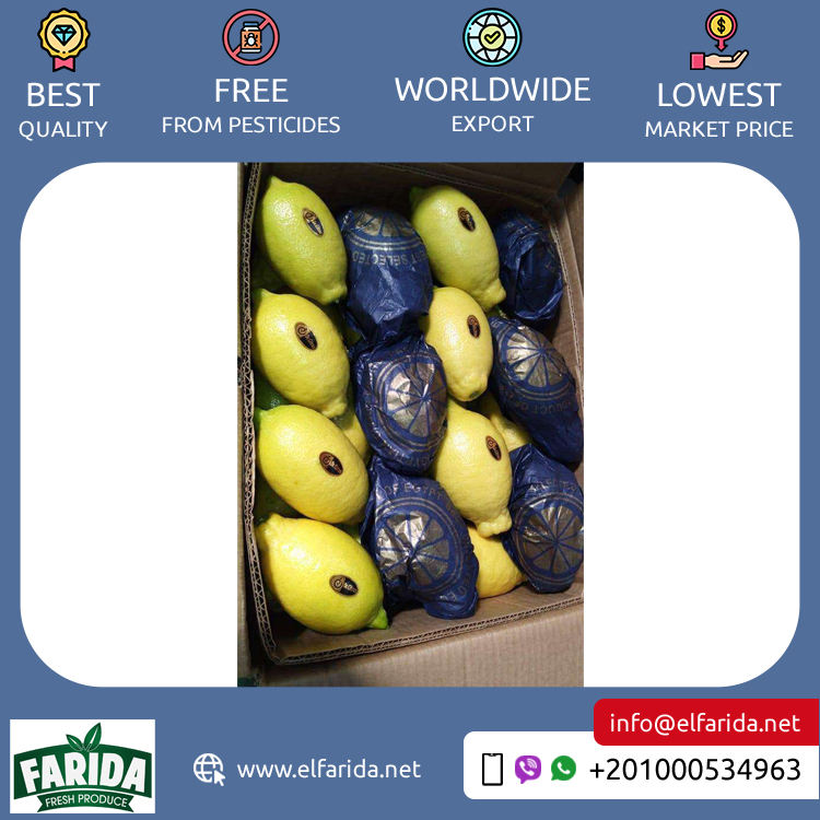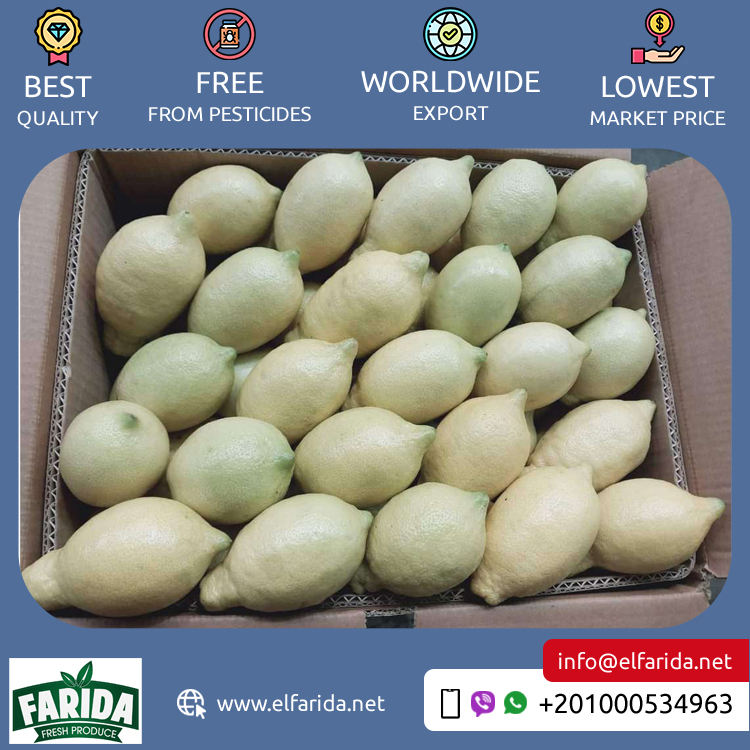 ขายส่งมะนาวเวอร์นาคุณภาพพรีเมียม สดฉ่ำ ผลิตจากอียิปต์ ผู้จัดจำหน่ายที่เชื่อถือได้ ราคาถูก บรรจุกล่อง 15 กก. ยี่ห้อเอลฟาริดา