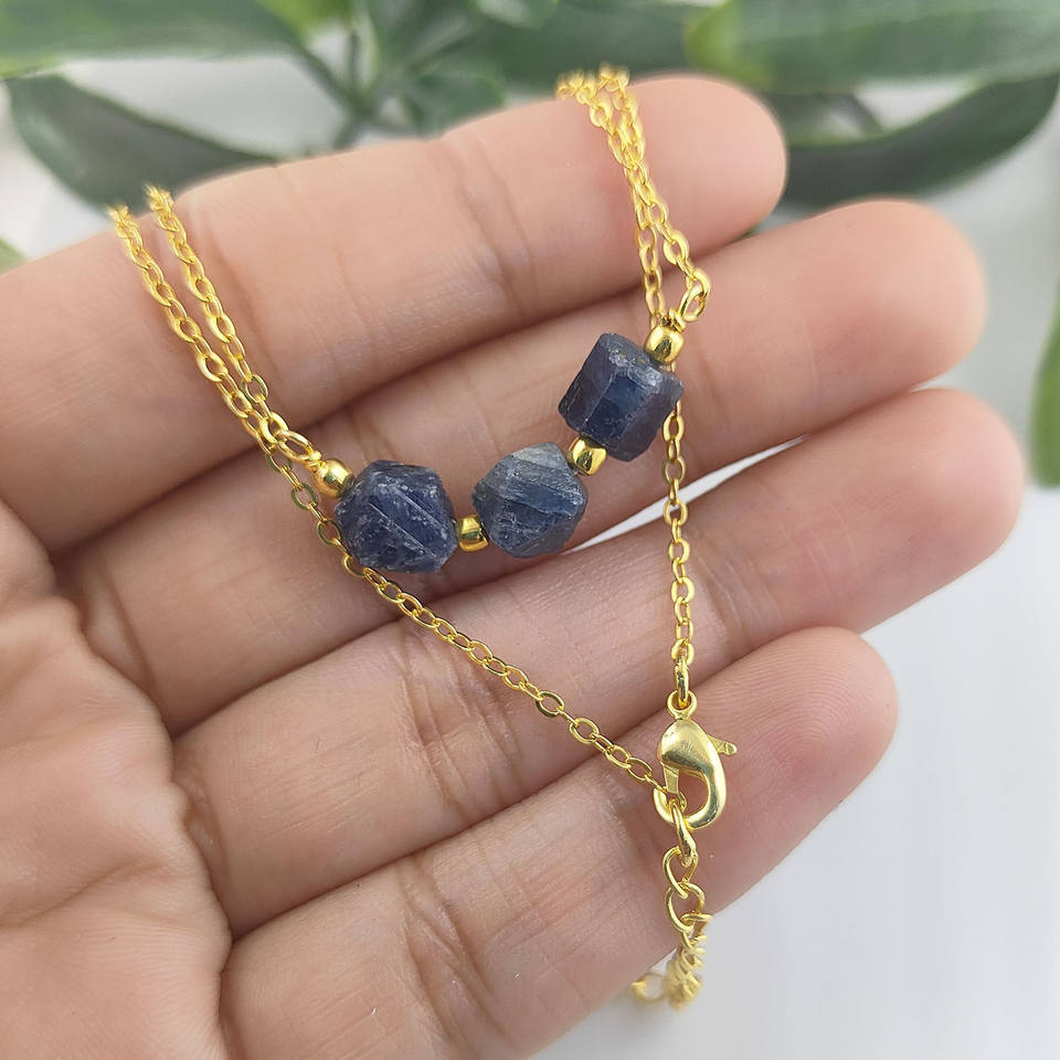 สร้อยคอพลอยไพลินขนาดใหญ่สำหรับสตรีเครื่องประดับแฮนด์เมด