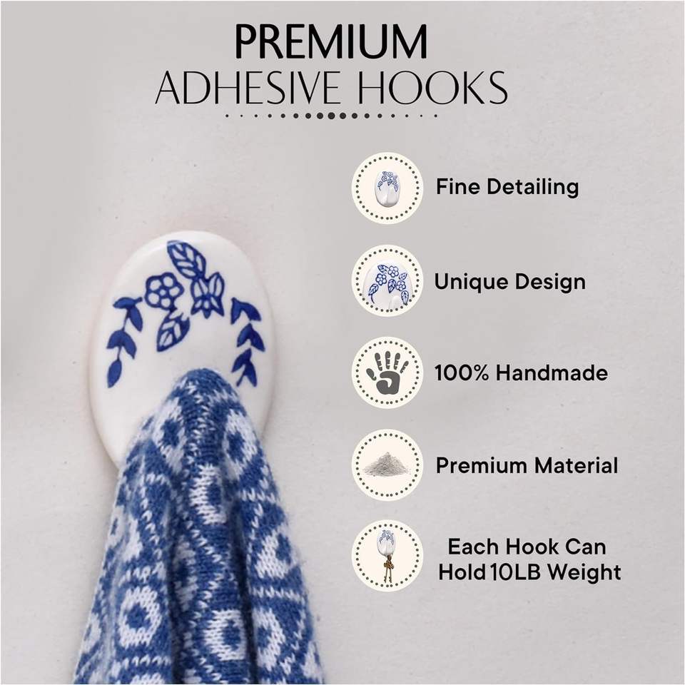 ชื่อผลิตภัณฑ์:ตะขอติดผนังเซรามิกสีฟ้าขาว - แพ็ค 3 ชิ้น