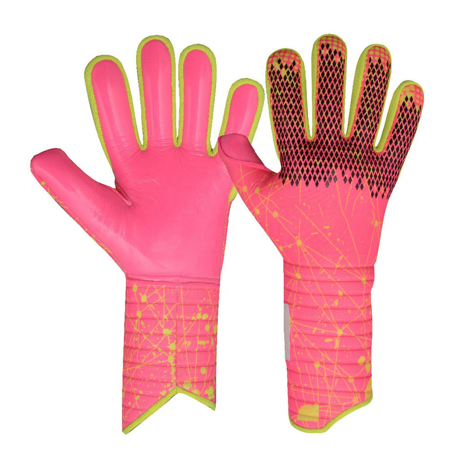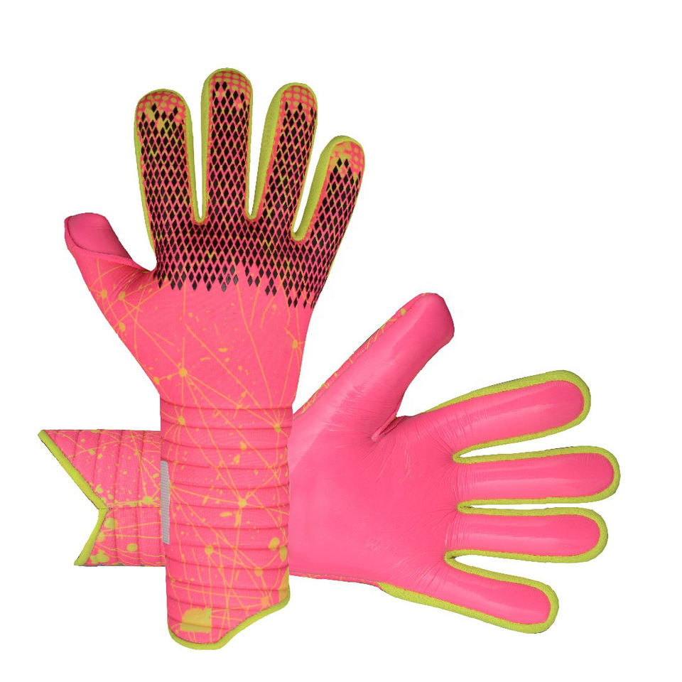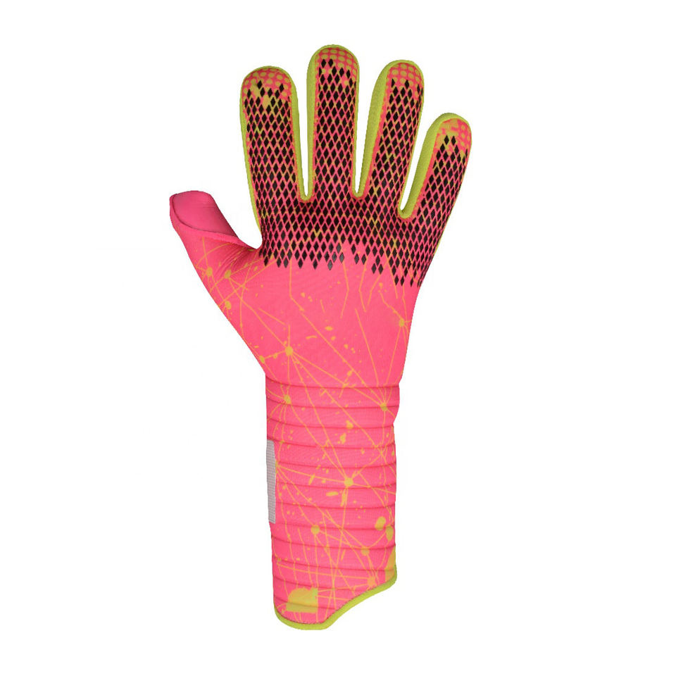 ถุงมือผู้รักษาประตูฟุตบอลแบบขายส่ง พร้อมยางลาเท็กซ์ที่มีความทนทานและสายรัดข้อมือปรับได้ ผลิตในประเทศปากีสถาน