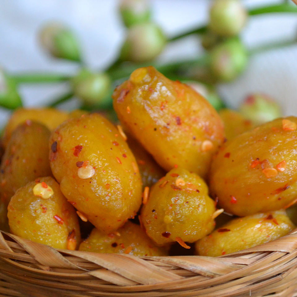 แอมบาเรลล่าอบแห้งแบบนุ่ม รสเผ็ดอร่อย ขนมขบเคี้ยวรสหวานอมเปรี้ยว รสชาติอร่อย น้ำตาลน้อย ผลิตในเวียดนาม ปราศจากกลูเตน เหมาะสำหรับทานกับชา