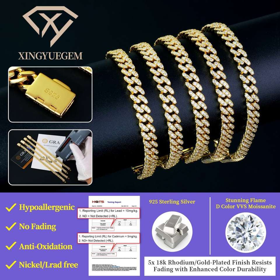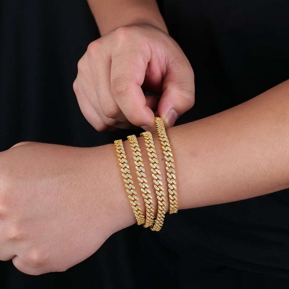 ขายส่งเครื่องประดับฮิปฮอปแบบยกชุด สร้อยข้อมือแบบ Cuban Link ขนาด 6 มม. ชุบทอง เงินแท้ 925 ประดับเพชร VVS มอสซาไนต์