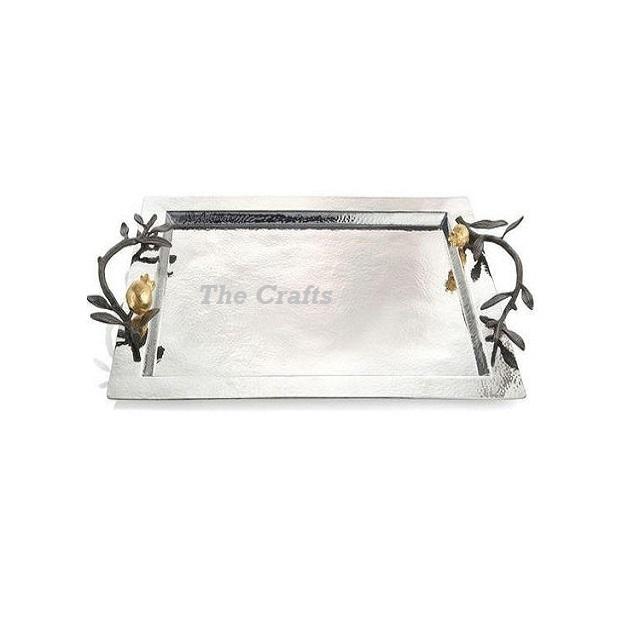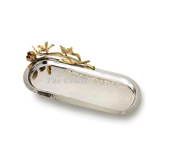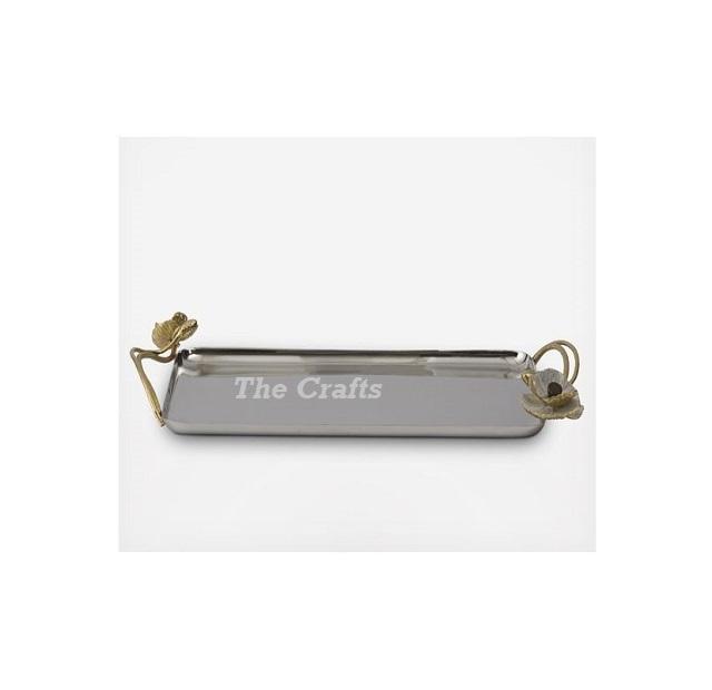 ถาดเสิร์ฟชาสแตนเลสพร้อมด้ามจับดีไซน์รูปใบไม้ถาดอาหารชาปรับขนาดได้ตามต้องการ