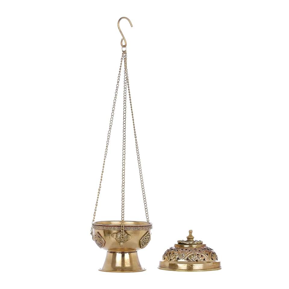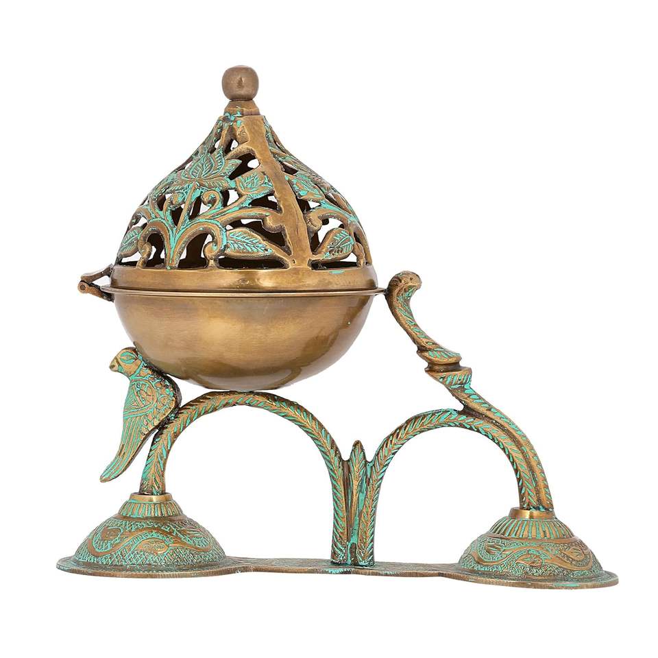 กระถางธูปทองเหลืองทำด้วยมือพร้อมด้ามไม้