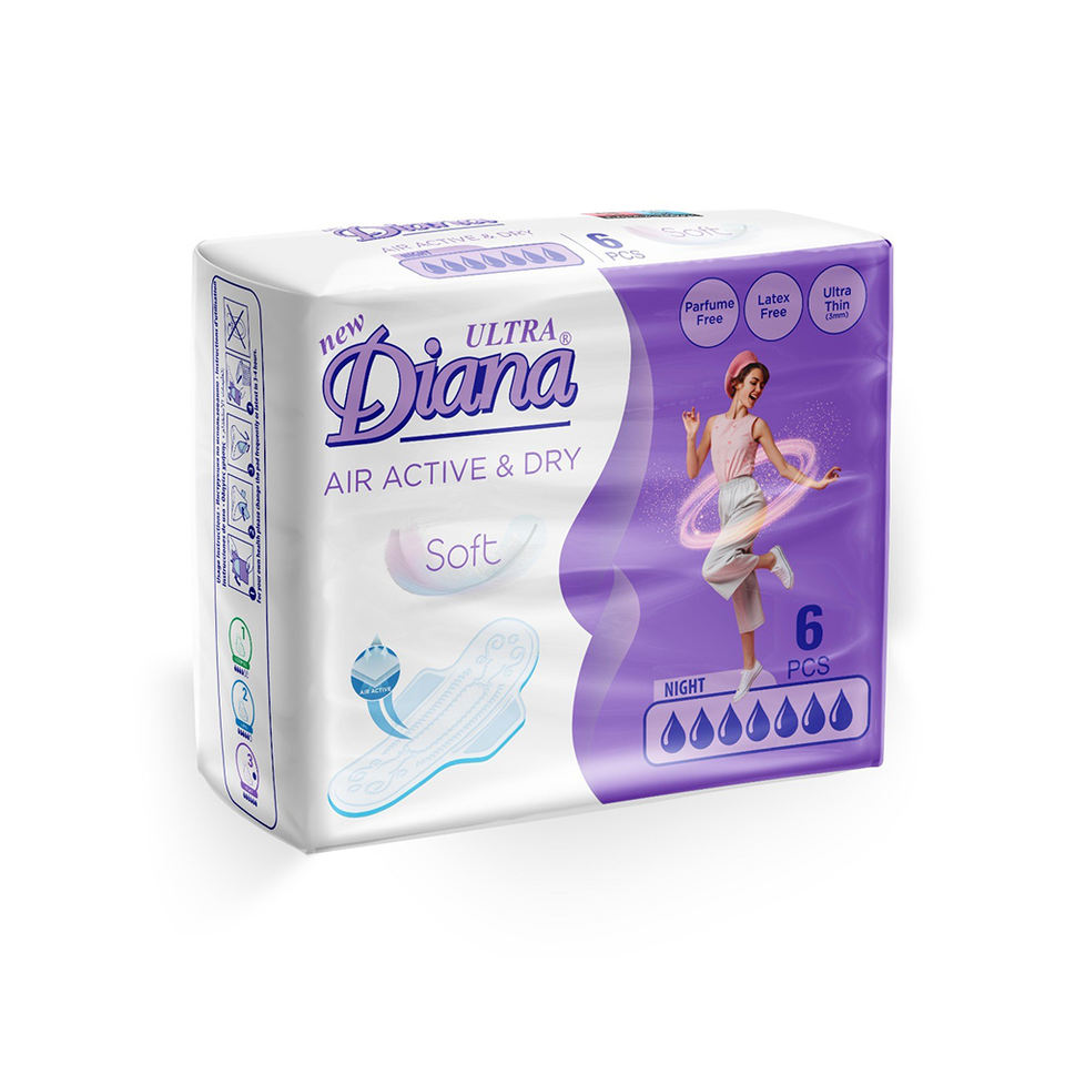 ผ้าอนามัยแบบนิ่มแผ่นอนามัยแบบใช้อากาศไดอาน่าแบบอัลตร้าไดอาน่าใหม่
