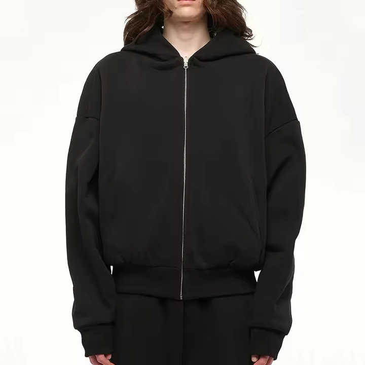 ผู้ผลิตเสื้อฮู้ดดี้ฤดูหนาวทรงปกติ สีพื้น ปักลาย ซิปสีดำ ดีไซน์ทันสมัย ขายส่ง ผลิตจากผ้าฝ้าย 100%