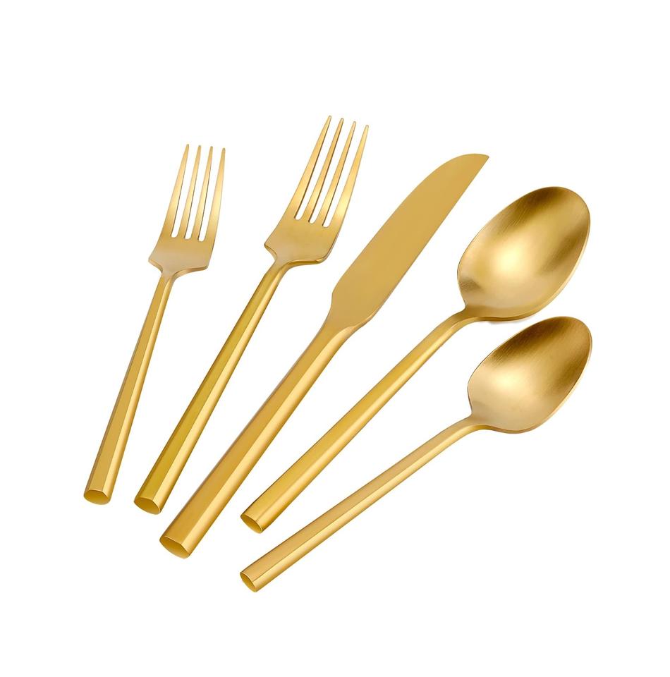 ชุดช้อนส้อมสแตนเลสด้ามจับค้อนสีทองเครื่องล้างจานทองเหลืองขัดเงาวาวปลอดภัยรวมถึงเครื่องใช้ในครัว