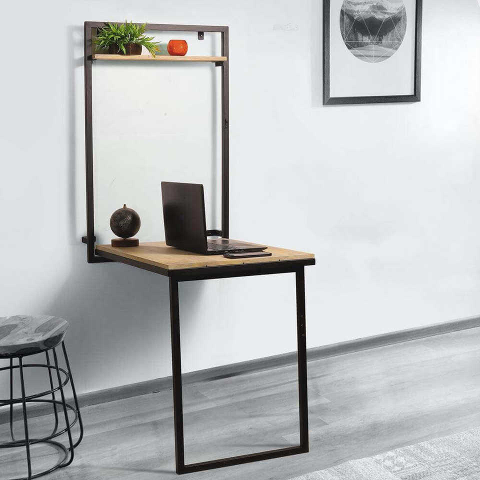 โต๊ะทำงานอเนกประสงค์แบบติดผนังทรงสี่เหลี่ยมทันสมัย ขนาดกะทัดรัด หน้าไม้ โครงโลหะ พับได้ เหมาะสำหรับห้องรับประทานอาหาร ห้องทำงาน สำนักงาน จำหน่ายจำนวนมาก