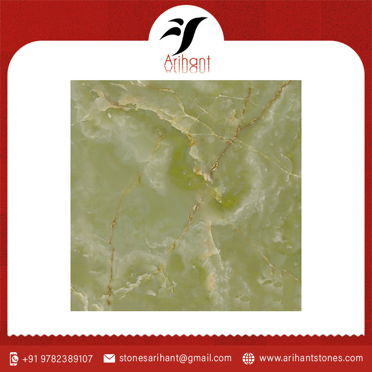 กระเบื้องหินอ่อนสีเขียวออนิกซ์จำนวนมากสำหรับปูพื้น ผนังหุ้ม และเคาน์เตอร์ครัวและอ่างล้างหน้าในห้องน้ำ