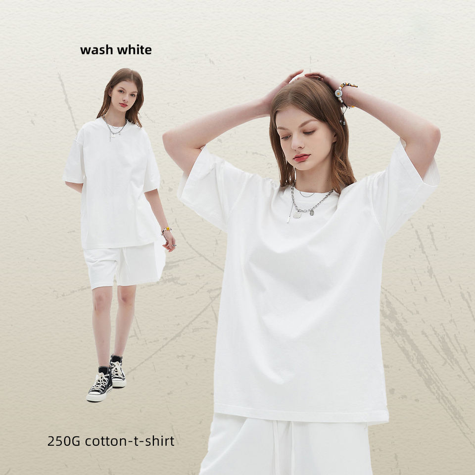 เสื้อยืดสตรีทแวร์แบบไหล่ตกใส่ได้ทั้งชายและหญิงเสื้อยืดผ้าฝ้าย100% ทรงโอเวอร์ไซส์ทรงบ็อกซี่ทรงโอเวอร์ไซส์