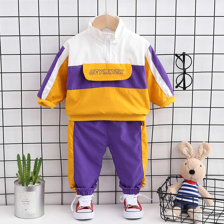ชุดเด็กทารก เย็บสี ชุดเสื้อคลุมและกางเกงกีฬา สำหรับเด็กผู้ชาย