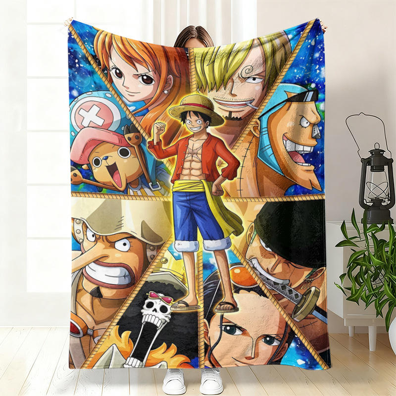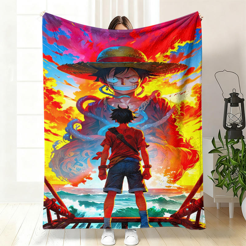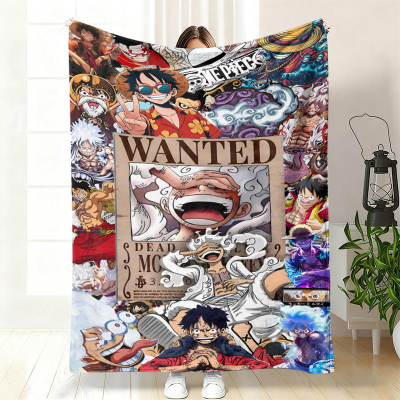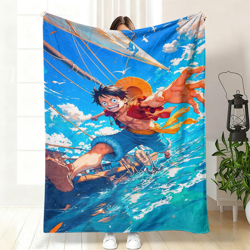 ผ้าห่มขนแกะลายการ์ตูนอนิเมะลูฟี่แบบกำหนดเองขายส่งจำนวนมาก ผ้าห่มนุ่มฟูสำหรับเตียง โซฟา รถยนต์ และการเดินทาง