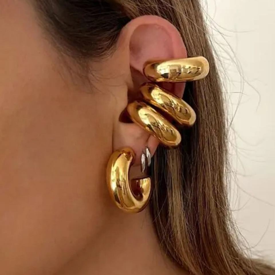 ต่างหูหนีบแบบห่วงรูปตัว C สไตล์มินิมอล ชุบทอง 18k สำหรับผู้หญิง ทำจากสแตนเลส ขายส่งจำนวนมาก