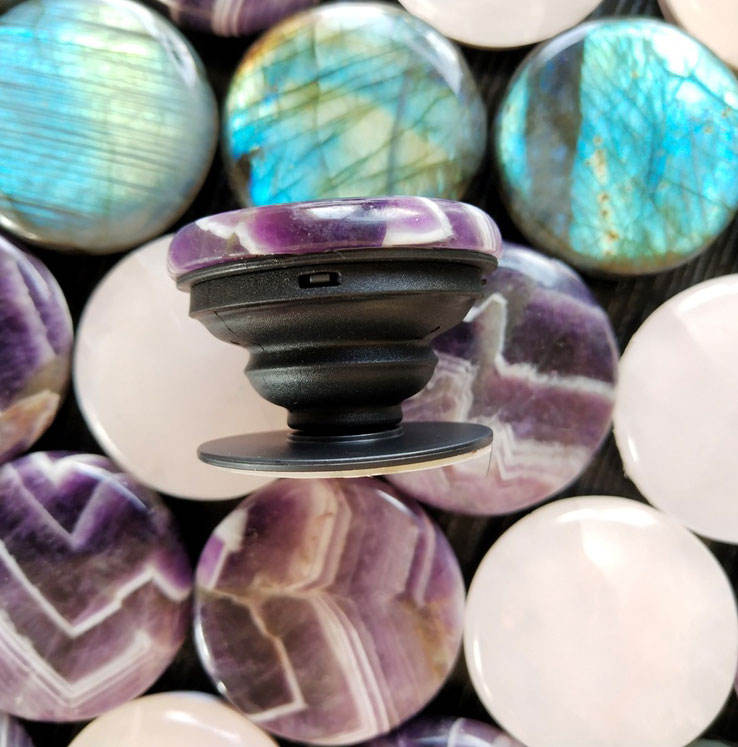 ขายส่งจำนวนมาก คริสตัลอเมทิสต์สีม่วงธรรมชาติ ที่จับโทรศัพท์ ขนาด 40 มม. รูปทรงกลม สติ๊กเกอร์ตกแต่งโทรศัพท์มือถือ ตัวอักษรภาษาอังกฤษ