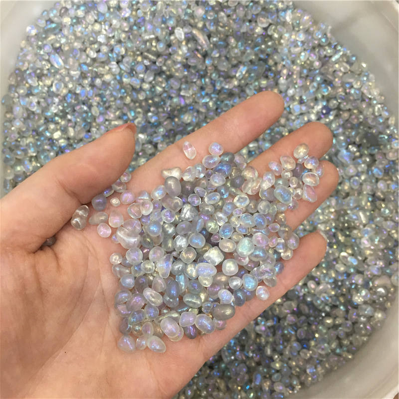 กลุ่มขายส่งธรรมชาติข้าวรูปร่างมูนสโตนออร่าคริสตัลกรวดหินสำหรับตกแต่งบ้าน