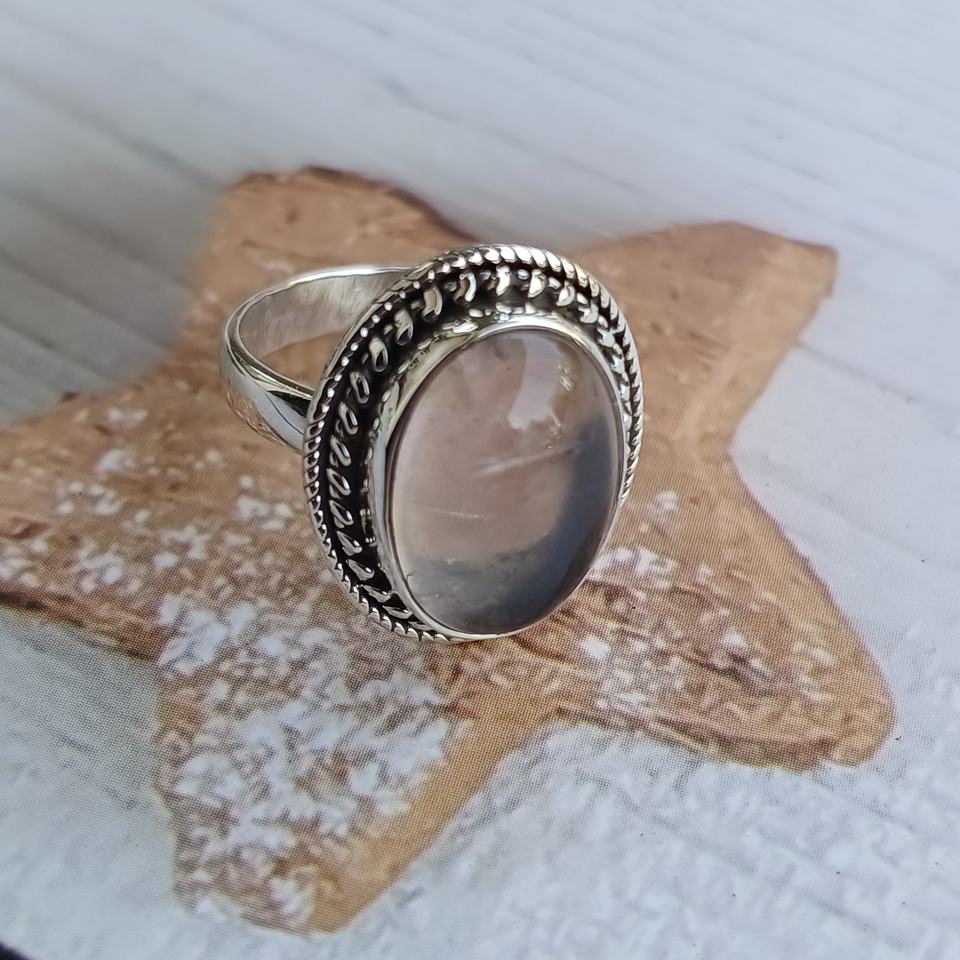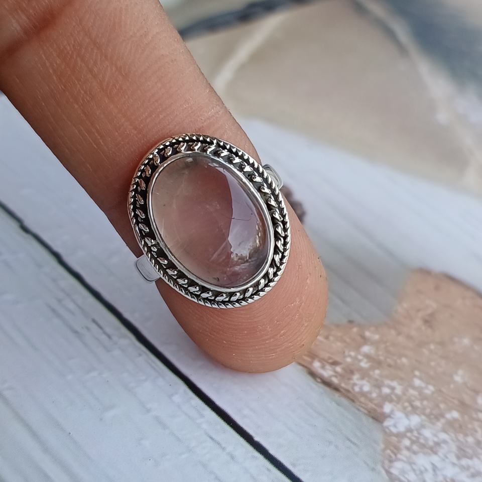 แหวนเงินแท้ 925 ประดับด้วยพลอยโรสควอตซ์ธรรมชาติ ทำมือจากเนปาล ขายส่งจำนวนมาก