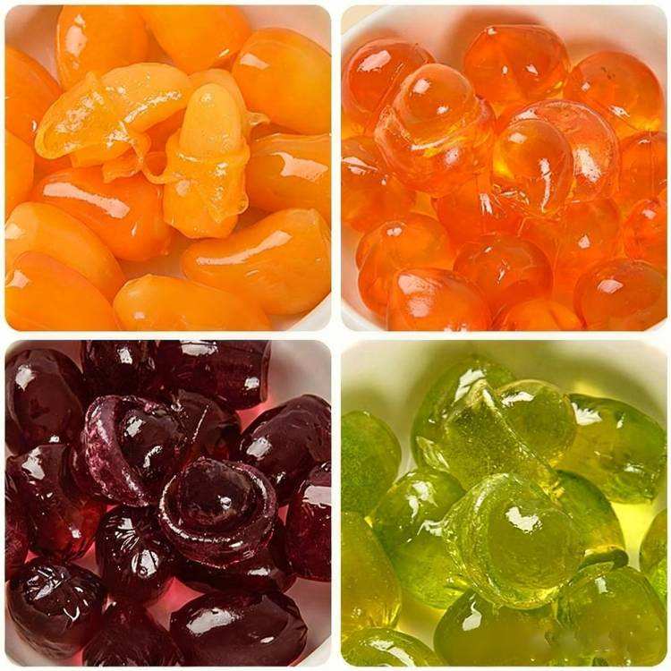 ลูกอมเจลลี่แบบลอกเปลือก ขายส่งจำนวนมาก รสผลไม้ตามสั่ง 3 มิติ รสแมงโก้ พีช องุ่นเขียว องุ่นแดง ขนมขบเคี้ยวแบบลอกเปลือก สีสันสดใส