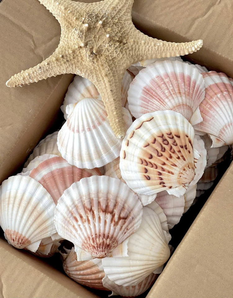 เปลือกหอยเชลล์ขายส่งจำนวนมากสำหรับการจัดจำหน่ายปลีกส่งระหว่างประเทศและสินค้าคงคลังสำหรับร้านขายของที่ระลึกชายฝั่งเฉพาะทาง