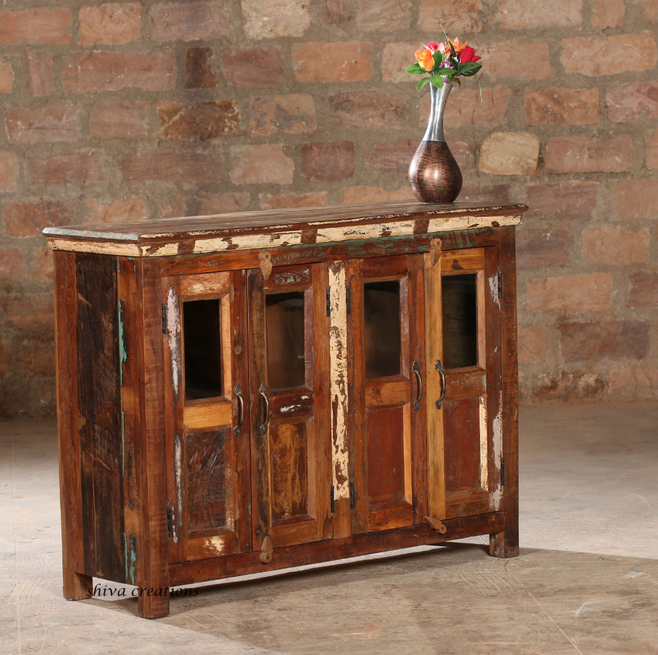 Product name:Reclaimed Wood 4 Glass Door Storage Display Cabinet