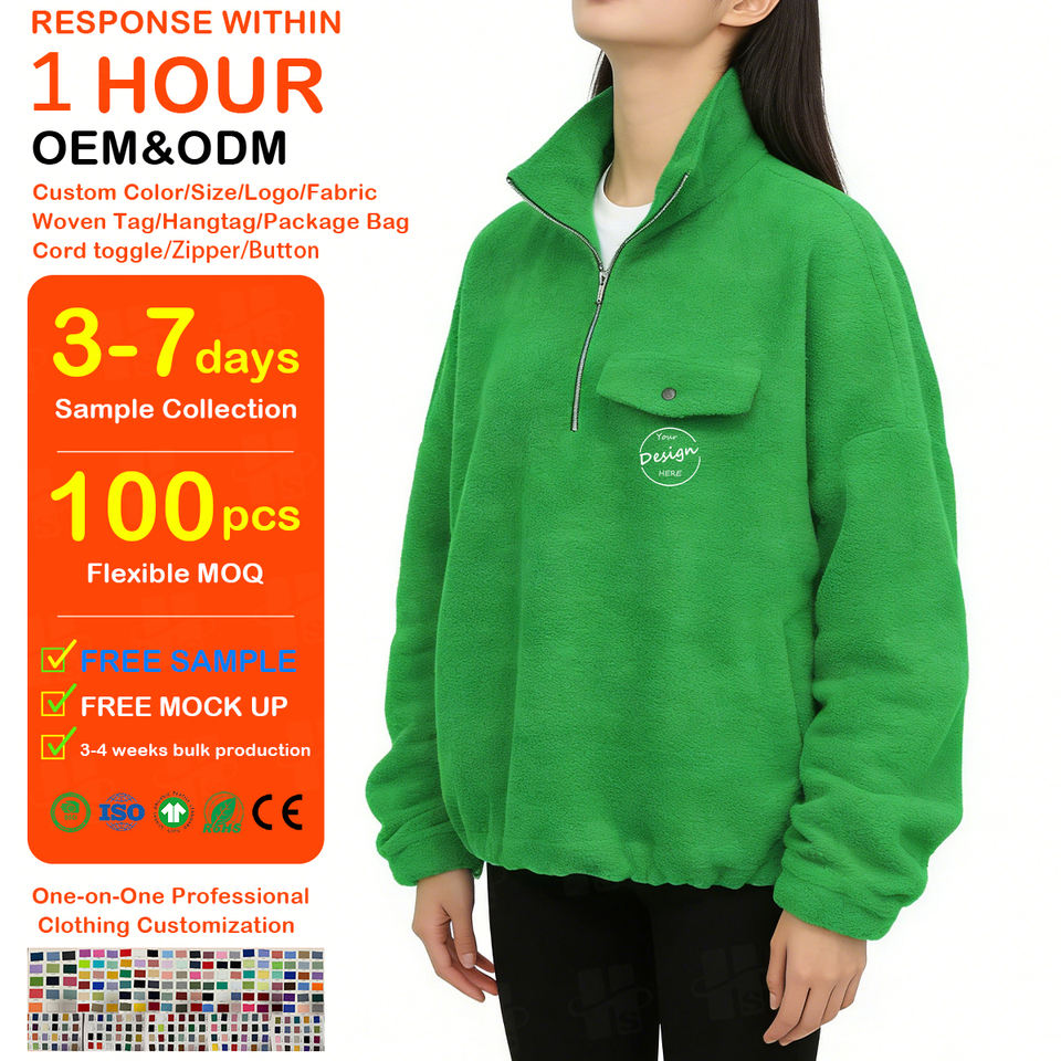 เสื้อสเวตเชิ้ตผู้หญิง คอตั้ง แขนยาว ปรับชายเสื้อได้ ปักลายตามสั่ง ผ้าฟลีซขนแกะ ซิป ¼ พร้อมเชือกผูก ขายส่งจำนวนมาก