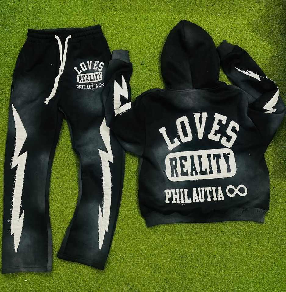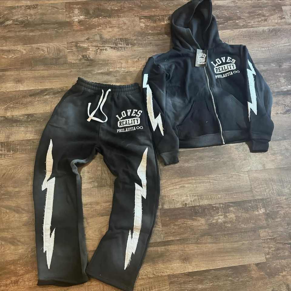 ชุดวอร์มกางเกงวอร์มปักลายและเสื้อฮู้ดชุดวอร์มซักลายปักใส่ตามท้องถนน
