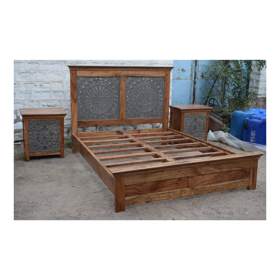 Bulk Wholesale Wholesale Furniture Headboard Bed With Bedside or Wooden Carved Bedroom Furniture Indore Furniture Wooden Carved Headboard Bed