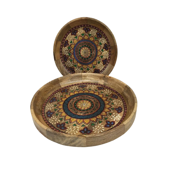 จานอาหารอิสลามทำจากไม้และโลหะจานสำหรับใช้ในร้านอาหารมี2ขนาดแตกต่างกัน