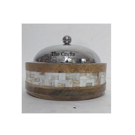 หม้อปรุงอาหารจานร้อนทำจากไม้และแม่ของไข่มุกสำหรับงานแต่งงานที่บ้านและโรงแรม
