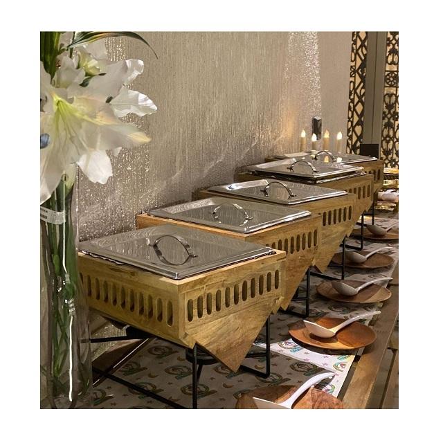 จานร้อนเสิร์ฟอาหารทำจากไม้และสเตนเลสสตีลจานร้อนสำหรับงานร้อนขายส่ง