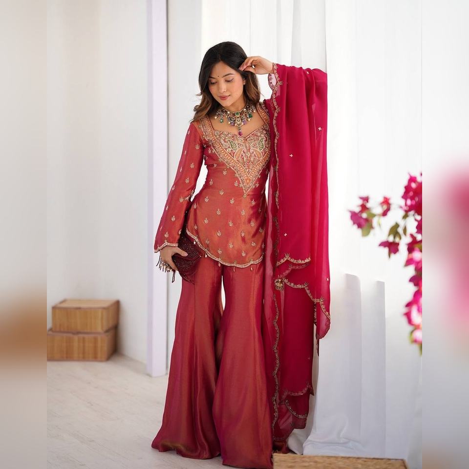 ชุดส่าหรีแบบพลาซโซ ไซส์ M-XXL ผ้าจอร์เจตต์ งานปักมือ 3 ชิ้น สำหรับผู้ค้าส่งและร้านค้าสิ่งทอ