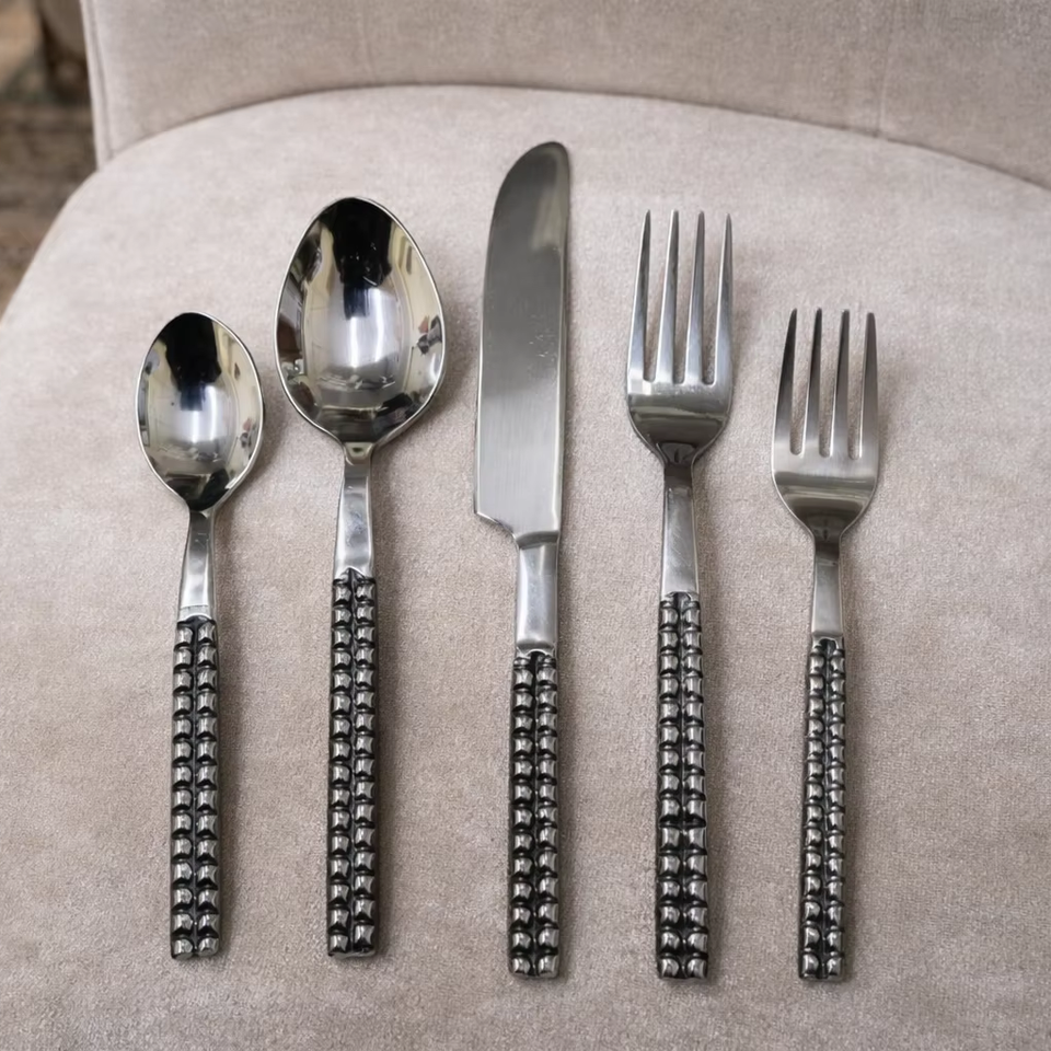 ชุดช้อนส้อมสแตนเลสขายส่ง ชุดเครื่องเงิน OEM ผู้ผลิตชุดช้อนส้อมแบบกำหนดเอง ชุดช้อนส้อมโลโก้สั่งทำ ชุดภาชนะบนโต๊ะอาหารแบรนด์ส่วนตัว